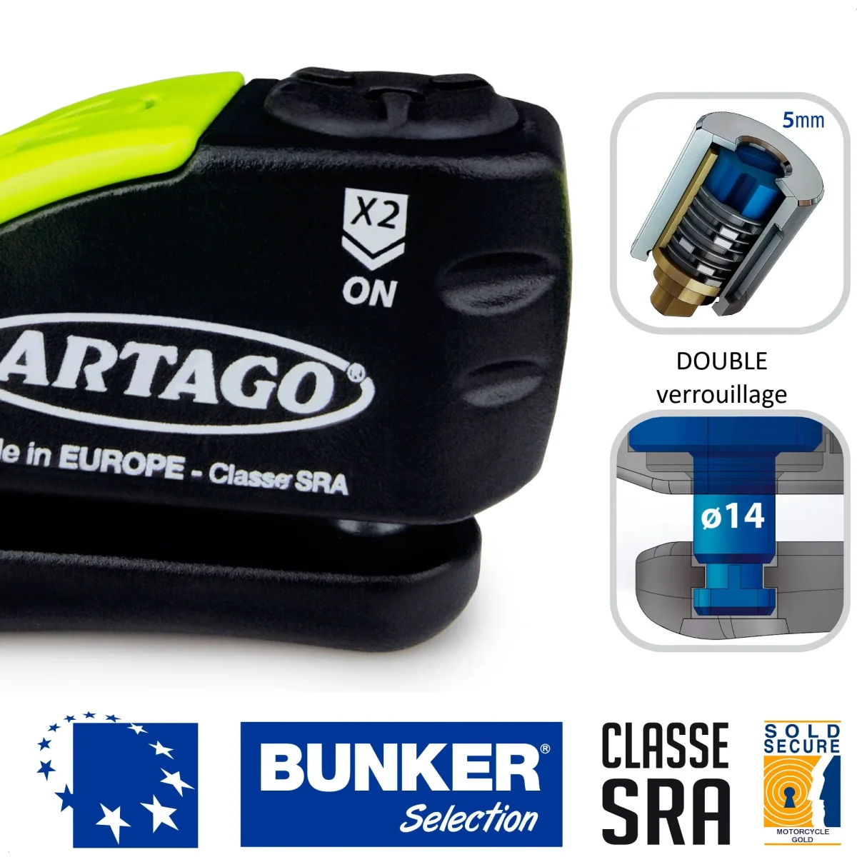 Notre bloque disque SRA moto 14mm Artago est la garantie ultime pour protéger votre deux-roues. Avec son axe de 14mm en acier haute résistance, ce dispositif certifié SRA est conçu pour résister aux attaques les plus agressives. Il dissuade efficacement les voleurs grâce à sa combinaison de robustesse physique et de technologie avancée. De plus, avec son système de double fermeture, ce bloque disque convient à une large gamme de motos et scooters.