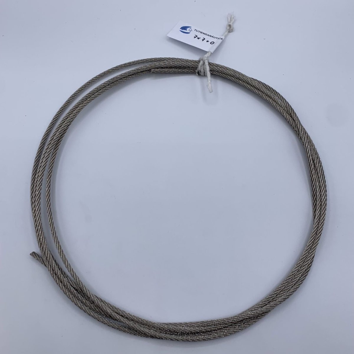 Cable acero inoxidable 7×7+0 de 4 mm Ø y 3,5 m de longitud. Cable bastante felxible y resistente fabricado con acero inoxidable AISI 316 ideal para trabajar en ambientes marinos y corrosivos o expuesto al exterior.