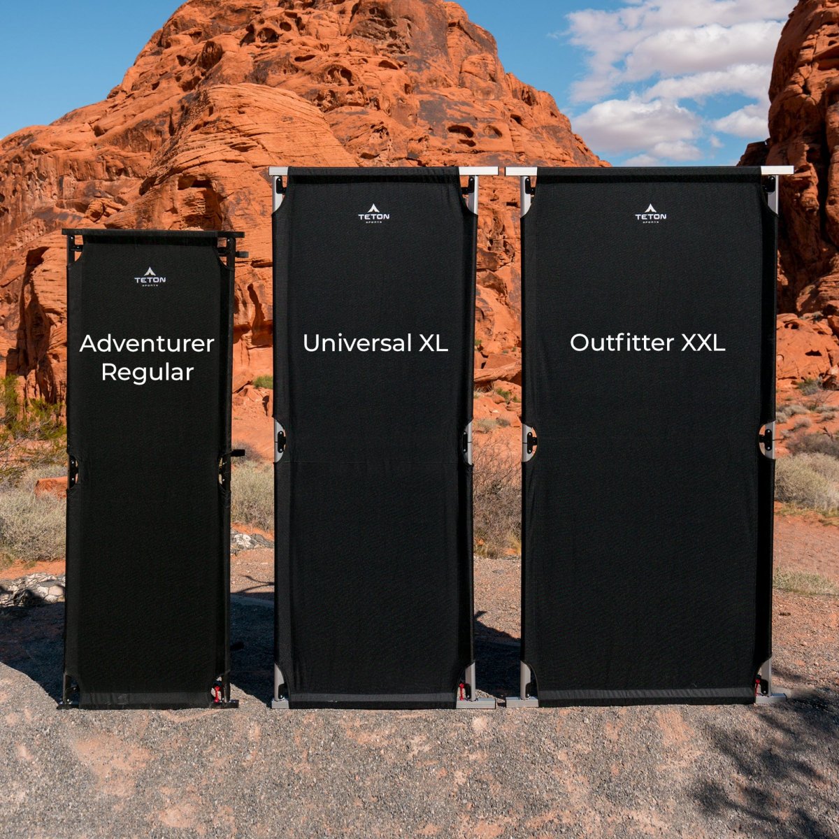- El catre que le sigue de tamaño es el catre plegable Universal XL y nuestro catre más grande es el catre plegable Outfitter XXL
