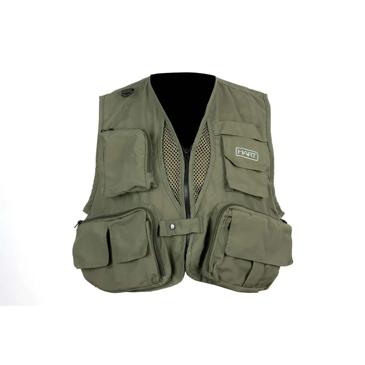 Chaleco de la marca Hart, modelo Rover, en color khaki, perfecto para tener a mano todos tus utensilios durante tu sesión de pesca.
