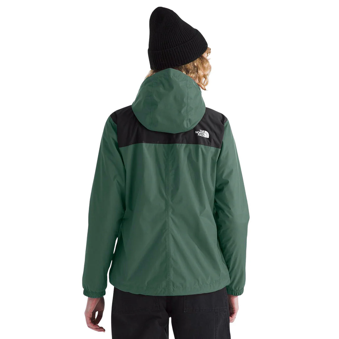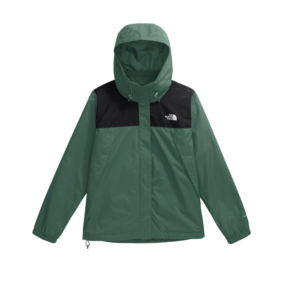 La chaqueta exterior con ajuste estándar está fabricada en DryVent™ 2L impermeable y transpirable, con acabado DWR sin PFC y costuras selladas para mantenerte seco. Cuenta con capucha ajustable de tres piezas, cremallera frontal cubierta, bolsillos con cierre seguro, puños elásticos y cordón interno en el dobladillo. Hecha en nylon ripstop reciclado, combina resistencia, protección y confort.