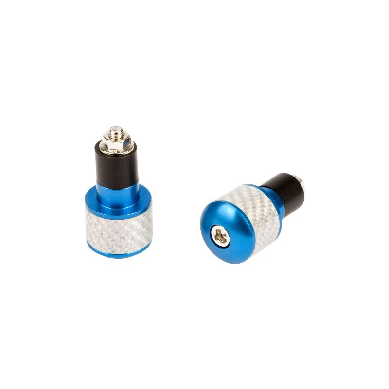 Embouts de guidon moto 17mm carbone blanc et anodisés bleu
