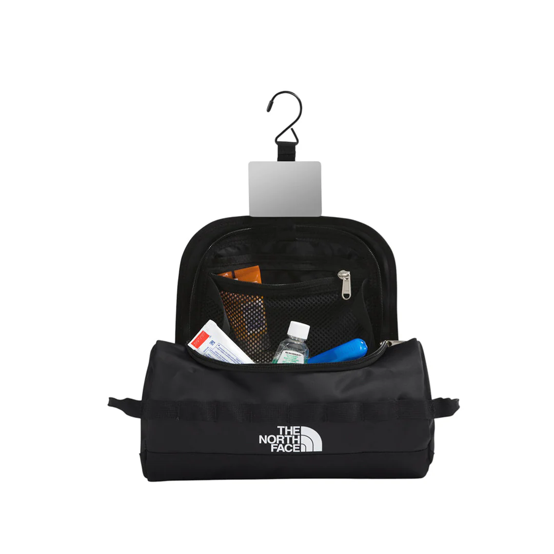 Fabricado en poliéster reciclado de 300D con laminado libre de ftalatos y base en nailon balístico reciclado de 840D con acabado repelente al agua sin PFC. Cuenta con gancho interno para colgar, correa de velcro para sujetar el espejo incluido, apertura en D con solapa con cierre, asas dobles en los extremos y cinta tipo daisy-chain para puntos de sujeción. Sus medidas son 28 x 15.25 x 15.25 cm, con un peso de 295 g.