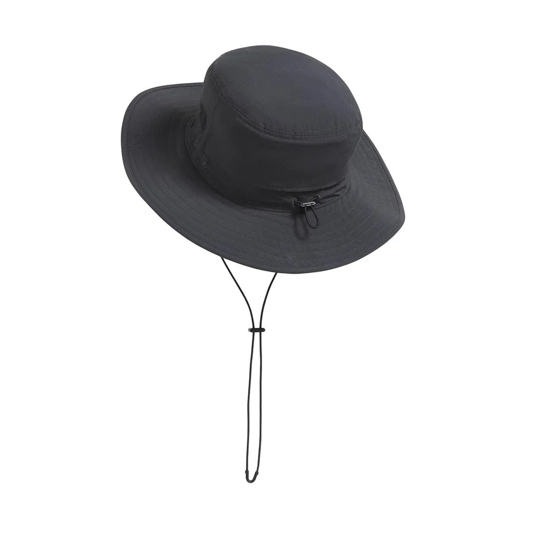 Sombrero Horizon Breeze unisex con cuerpo de nailon reciclado y forro en poliéster reciclado. Banda interna FlashDry-Pro™, mentonera ajustable y accesorios en plástico reciclado. Ofrece UPF 40+ y cuenta con Sello de Recomendación de la Fundación contra el Cáncer de Piel. Confort técnico para explorar.